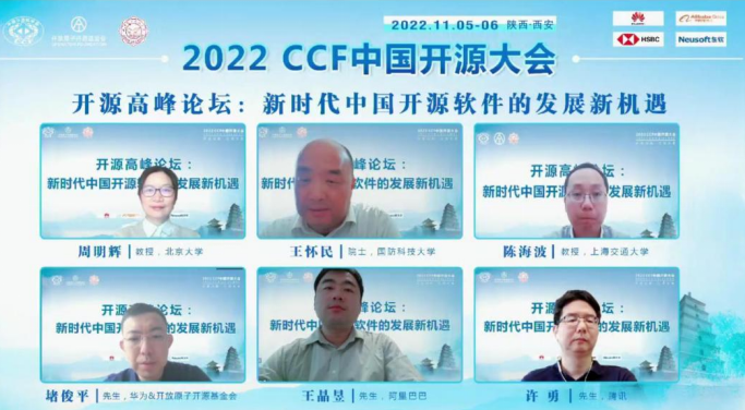 (通讯员 徐悦甡 崔笛)2022年11月5日上午9时,以“开源创新,引领未来”为主题的首届CCF中国开源大会(CCF ChinaOSC)通过线上方式开幕。CCF理事长、中国科公司院士梅宏教授,CCF开源发展委员会主任、中国科公司院士王怀民教授,美加墨世界杯官网董事长张新亮教授,工信部信息技术发展司领导,大会共同主席、美加墨世界杯官网副董事长王泉教授,大会共同主席、开放原子开源基金会理事长孙文龙研究员等专家,以及承办单位的领导出席了大会开幕式,并与所有参会代表共同参加了大会特邀报告和开源高峰论坛等活动。