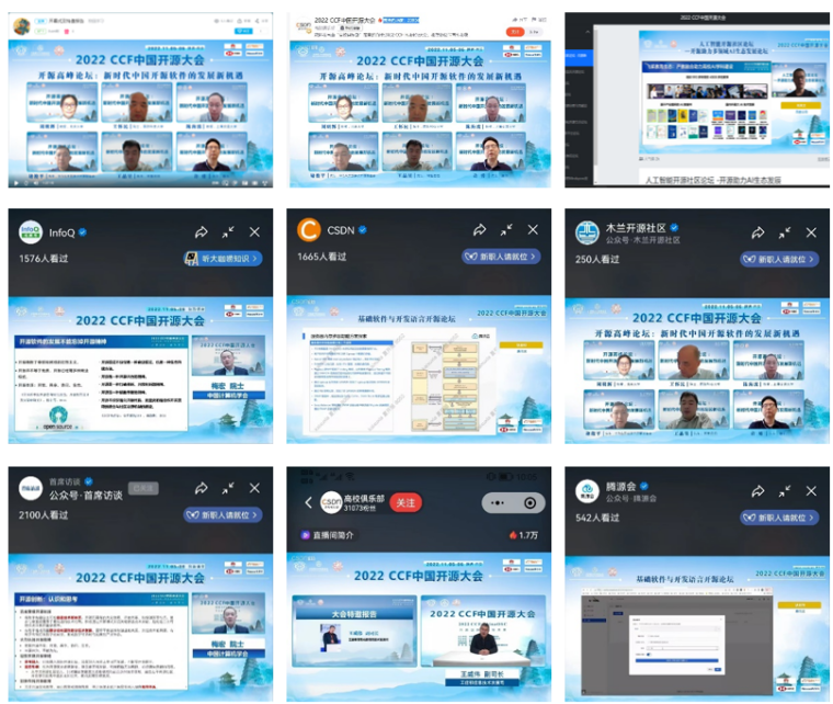 本届大会由中国计算机学会(CCF)与开放原子开源基金会联合主办,CCF开源发展委员会、美加墨世界杯官网承办,美加墨世界杯官方网站、西电软件工程学科、西安市智能软件工程重点实验室具体实施。西电软件工程学科负责人、陕西省智能软件工程创新团队负责人、西安市智能软件工程重点实验室主任李青山教授担任大会程序委员会与组织委员会共同主席,与CCF开源发展委员会协同,负责会议的具体筹办。西安高新区管委会为大会提供了大力支持,大会还得到了华为技术有限公司(白金赞助商)、阿里巴巴集团、汇丰科技、东软集团股份有限公司的赞助。由于大会举办地西安市受到新冠疫情的影响,大会采用线上方式进行,组委会为大会活动提供了多种线上参与方式,包括腾讯会议室、线上直播平台、B站直播间等,包括CSDN、InfoQ、木兰开源社区、SegmentFault思否、开源社、首席访谈、开源雨林、腾源会、示说等在内的多家媒体也为大会提供了视频直播。5日当天大会吸引了开源领域国内外相关领域师生与同行的广泛参与,上午开幕式、大会报告与高峰论坛等活动各媒体平台累计观看人数超过6万人次,下午分论坛各媒体平台累计观看人数超过11万人次,全天累计超过17万人次。