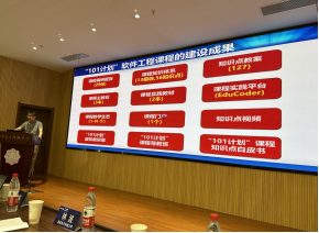 最后国防科技大学毛新军教授做了《软件工程教员工态的建设及应用》的报告,介绍了101计划软件工程课程所建设的3本教材,分享了依托三本教材所建设的教员工态,讨论了如何应用配套教学资源来开展课程教学。