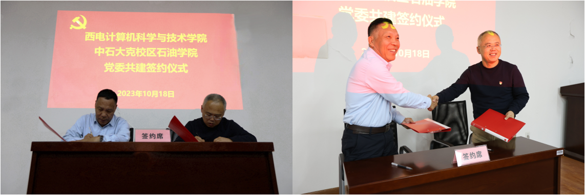 双方现场签署党委共建协议。与会成员围绕学科援建、党支部建设、党建带团建、课程建设、青年教师指导、交换生管理等方面进行了卓有成效的研讨交流。双方均表示,克拉玛依校区石油公司和西电计科院办学特色鲜明且优势互补,今后将珍惜党委结对共建情谊,加强工作谋划对接和沟通交流,深化建立对口援助关系以来的合作成果,以高质量党建推动高质量援建,促进双方高质量发展。