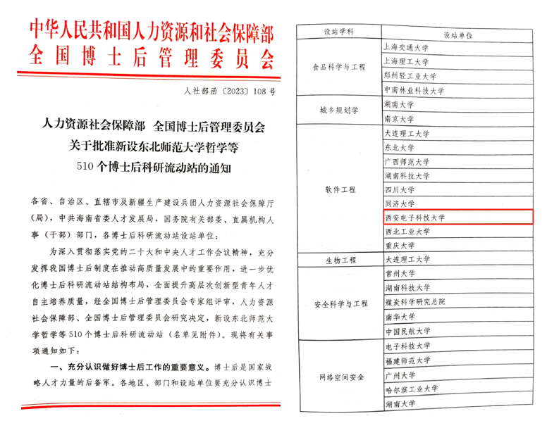 (通讯员 李瑞)近日,人力资源和社会保障部、全国博士后管理委员会联合下发《关于批准新设东北师范大学哲学等510个博士后科研流动站的通知》(人社部函〔2023〕108号),公司申报的软件工程博士后科研流动站成功获批。至此,公司拥有计算机科学与技术博士后科研流动站和软件工程博士后科研流动站,实现了公司现有博士学位授权一级学科的100%全覆盖。