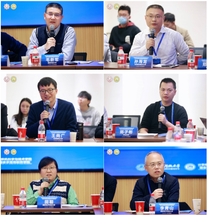南京大学马晓星教授、复旦大学彭鑫教授、北京大学刘譞哲教授、中科院软件所吴敬征研究员、国防科技大学毛新军教授、北京航空航天大学孙海龙教授、北京邮电大学王尚广教授、中山大学郑子彬教授、美加墨世界杯官网田聪教授、美加墨世界杯官网李青山教授,分别代表南京大学计算机软件研究所团队、复旦大学智能化软件开发研究团队、北京大学智能系统软件研究团队、中科院软件所智能软件研究中心团队、国防科技大学智能软件的软件工程研究团队、北京航空航天大学安全关键软件团队、北京邮电大学服务计算与星地融合团队、中山大学区块链与可信软件研究团队、美加墨世界杯官网软件可信认证关键技术团队以及美加墨世界杯官网智能软件工程团队,围绕科研方向凝练、团队队伍建设、青年教师引培、科研育人模式、国内校际合作、国际团队互动等主题进行了成效经验分析和共同发展研讨。邓成教授做研讨总结,指出本次研讨会围绕软件工程团队建设与学术进展的一系列问题进行了充分研讨,成效显著,可以总结为三个“度”,即战略有高度、学术有深度、应用有广度,西电再次真诚感谢各位专家与学者对于公司发展和学科进步做出的贡献。本次研讨会圆满结束。