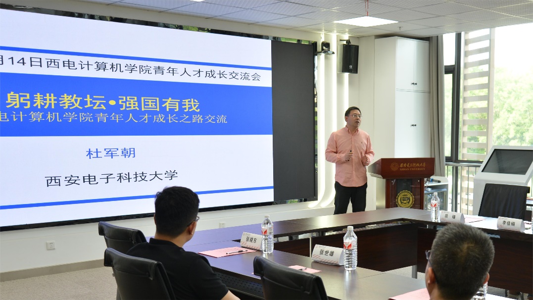 国家级领军人才杜军朝教授作了题为“躬耕教坛,强国有我—青年人才成长之路”报告,他从我国学术人才成长体系、计算机领域青年人才的成长之路、个人成长经历等方面分享了个人经验。他说到,青年教师要放眼未来,瞄准国家重大战略需求来逐步明确个人的研究方向;积极加入团队、融入团队,通过团队的基础和力量提升个人教学科研水平;积极加入相关领域内学术组织,积极参与学会(会议)服务,与领域内高层次人才多交流,同时要积极申请各类项目和奖项,主动指导员工,多维度增强和发展个人能力。