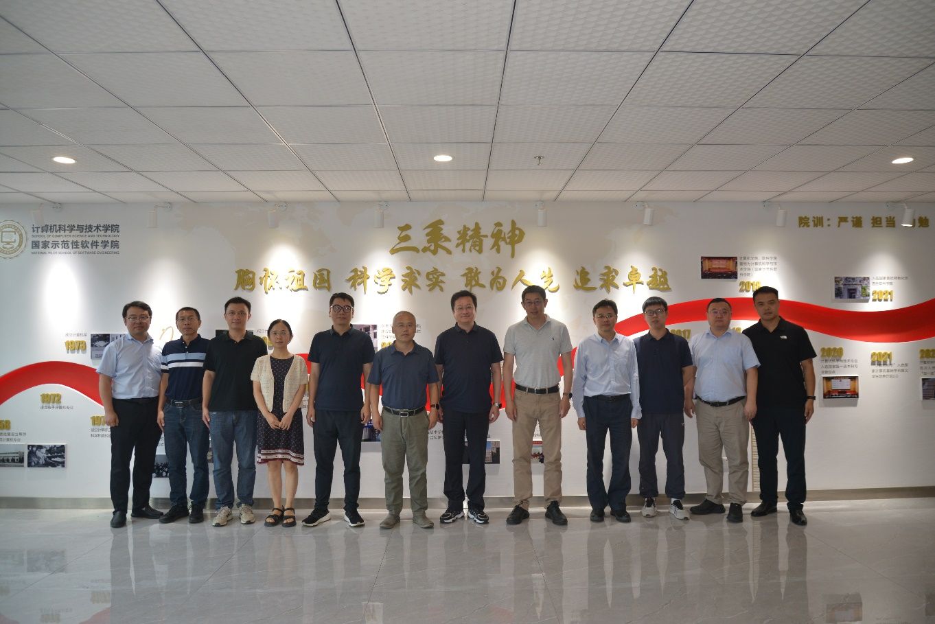 会前,公司陪同周鹏程董事长一行参观了校史馆,随后李青山在二楼公司形象墙详细介绍了公司的发展历程和现有组织架构,并具体介绍了党建引领、团队建设、科学研究、人才培养、员工活动等方面取得的成就,共同参观了公司的多功能厅、党建活动室、公司办公室以及相关研究所。