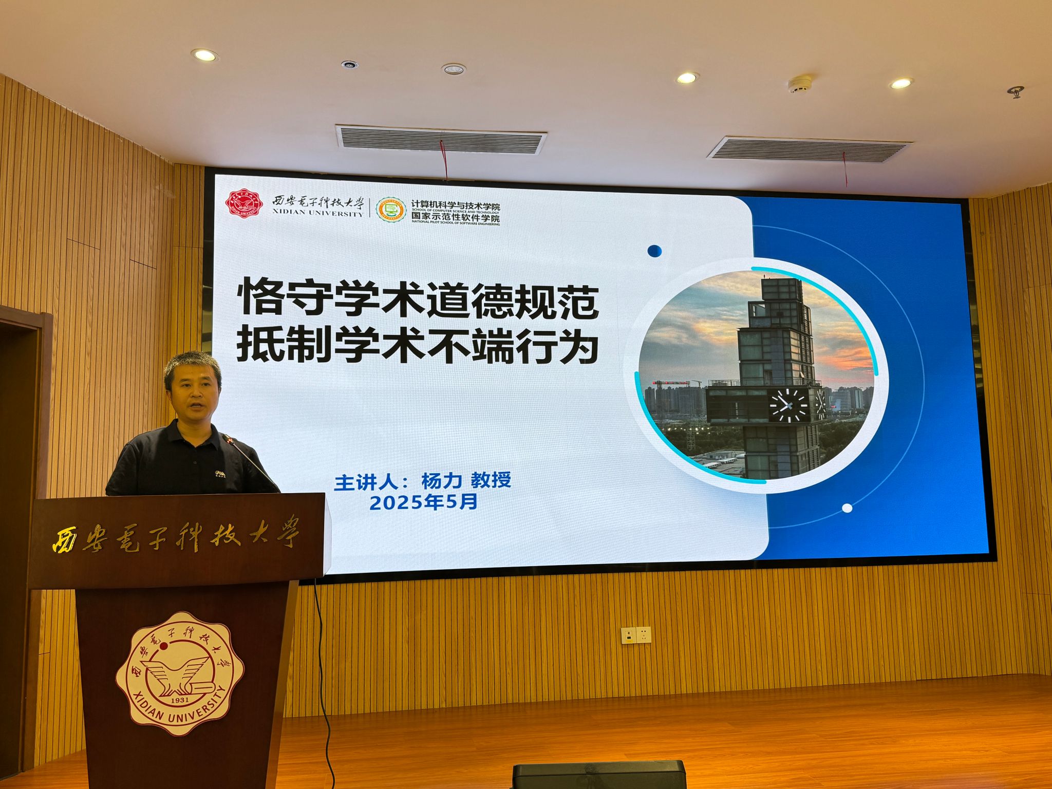 (通讯员 徐立)为大力弘扬科学家精神,增强公司研究生科研诚信意识,进一步推动公司科学道德与学风建设。5月15日下午,美加墨世界杯官方网站在南校区网安大楼A1-101开展“恪守学术道德规范,抵制学术不端行为”主题讲座,公司副经理杨力教授主讲,70余名研究生参加,会议由公司党委副书记王佩主持。