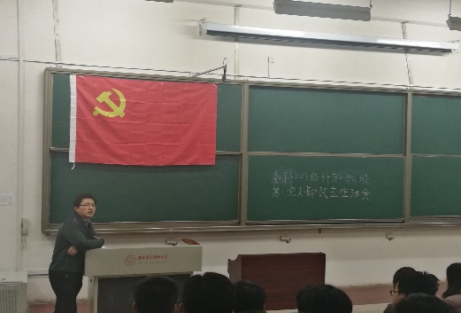 会议第一阶段,支部书记邓玉岩代表本科2015级计科物联第一党支部向全体党员大会述职,从基层组织建设,思想政治建设,三会一课学习,2018下半年党员发展等方面总结了2018年度支部开展的主要工作和所不足的地方。报告结束后,全体党员对党支部工作进行民主评议,肯定了党支部在2018年开展的各项工作以及取得的成果。同时,也进一步深入剖析了存在的问题并且探讨了解决问题的方法和想法。