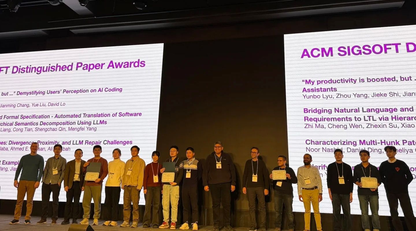 (通讯员 王小兵 常瀚堃)日前,第40届ASE2025(IEEE/ACM International Conference on Automated Software Engineering)国际学术会议在韩国首尔召开,ASE是国际软件工程领域的顶级学术会议,与ICSE、FSE并列为ACM SIGSOFT旗舰系列会议。西电美加墨世界杯官方网站田聪教授团队的工作“Bridging Natural Language and Formal Specification-Automated Translation of Software Requirements to LTL via Hierarchical Semantics Decomposition Using LLMs”获得IEEE/ACM SIGSOFT Distinguished Paper Award杰出论文奖,也是公司首次获得该项殊荣。该奖项是国际软件工程领域最具影响力的学术荣誉之一,用以表彰在理论创新与工程实践方面均有突出贡献的研究工作。本次论文由田聪教授担任通讯作者,杨孟飞院士为指导专家,论文第一作者为青年教师马智,其余作者依次为文成、苏哲欣、梁潇和秦胜潮教授。