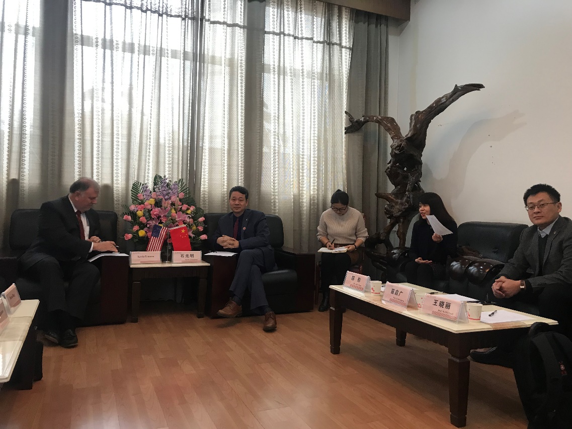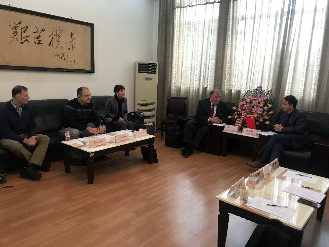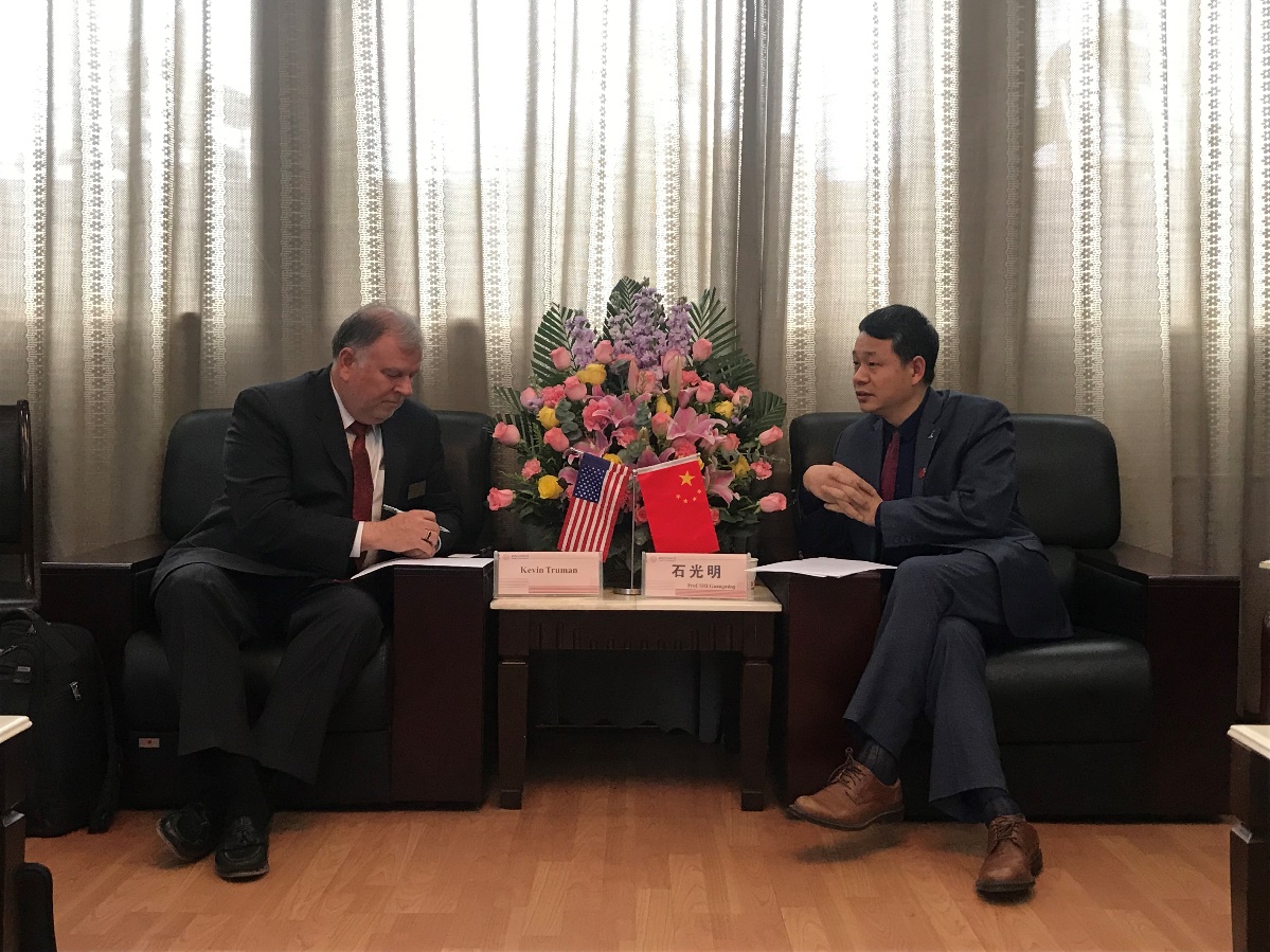 Kevin Truman首先对西电的热情接待表示了感谢,并对西电在过去两年中取得的成就表示了祝贺。Kevin Truman表示密苏里大学堪萨斯分校近几年也在不断扩大公司招生规模、增加科研项目和支持创新创业发展,他提到此次一同来访西电的还有计算机和工程公司的两位教授,这两位教授的研究成果已被阿里巴巴蚂蚁金服收购,且两位教授也分别在蚂蚁金服担任首席技术执行官和研发主任,此类公司对专业技术能力优秀且熟悉中美语言文化的人才需求很大,他希望以此为契机和西电在全球人才培养方面开展合作。