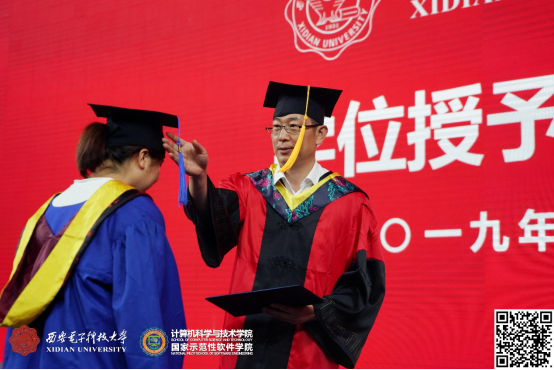 随后,学位授予仪式在欢快的音乐声中正式开始,参与学位颁授的嘉宾一一上台为2019届毕业生颁授学位。