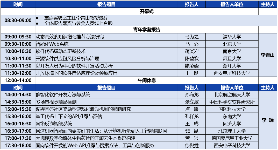 西安市智能软件工程重点实验室围绕软件工程学科内涵,以智能的软件工程和智能软件的工程为主要研究内容,致力于提升软件设计、实现、运维等环节的智能化水平,突破面向特定行业和领域的智能软件关键技术,拓展“智能软件+X”前沿交叉研究及领域应用。同时,结合西安市“硬科技之都”建设和软件相关产业发展需求,着力于智能软件工程技术落地与自主可控系统研发。为紧跟智能软件工程学术发展前沿,加强软件工程领域青年教师学术交流,促进实验室高质量学术梯队建设,进而推动公司软件工程学科持续发展,智能软件工程重点实验室特此举办“第一届青年学者论坛”。论坛由美加墨世界杯官方网站智能软件与系统新技术研究所承办,通过线上的形式开展。