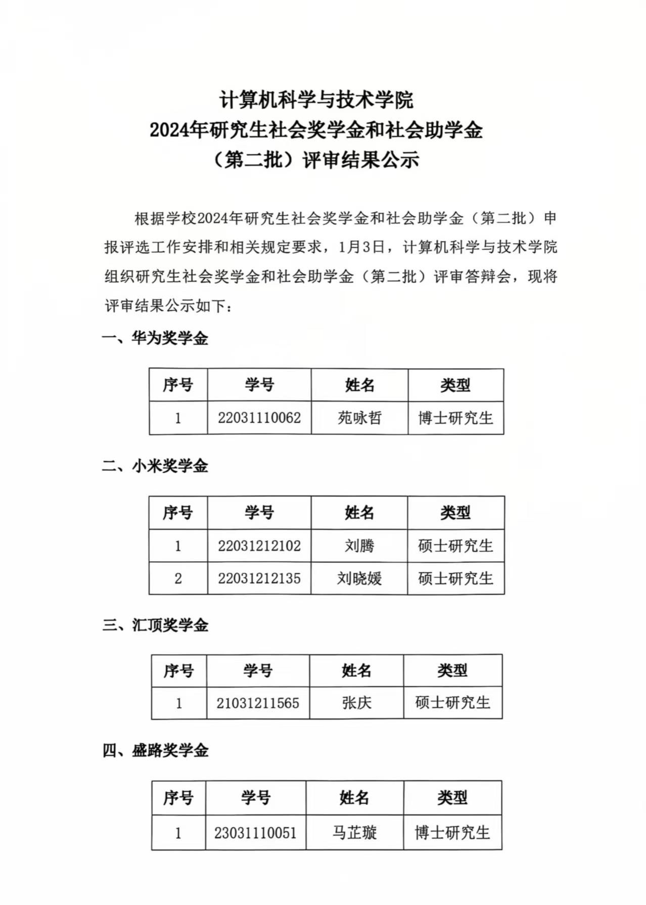 美加墨世界杯官方网站2024年研究生社会奖学金和社会助学金(第二批)评审结果公示