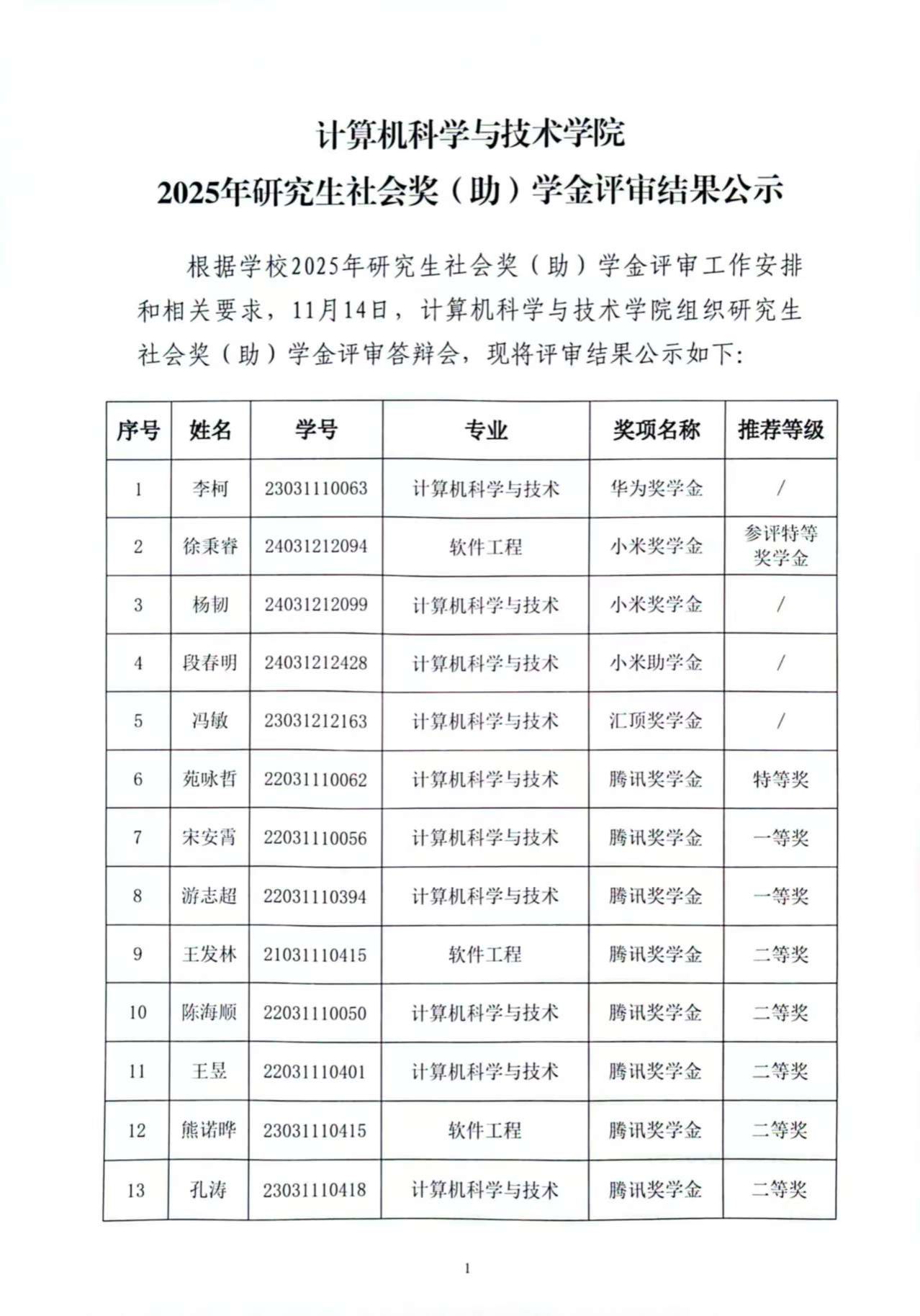 美加墨世界杯官方网站2025年研究生社会奖(助)学金评审结果公示
