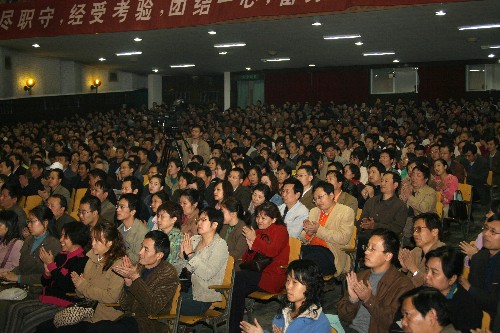 10月27日下午,公司本科教学工作水平评估迎评争优动员大会在公司大礼堂隆重举行。全体在校的校领导以及全体教职员工济济一堂参加了大会。会议由副董事长陈平主持。李立书记、段宝岩董事长分别作重要动员讲话。
