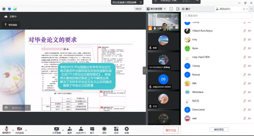 1月4日下午,教学副经理万波老师带来了《本科毕业设计线上指导》,特邀公司各系主任共同参与。万老师从本科毕业设计的定位讲起,指出其作为本科教学计划综合环节的必要性、重要性、理论与现实意义等。随后详细解读了现行对毕业论文的各项要求,介绍了公司SPOC平台在智能分析毕业论文规范性方面的优势与亮点。之后万经理梳理了整体毕业设计的流程,各个关键环节的时间节点及产出要求,毕业设计各环节的逻辑过程等。接下来,万经理为同学们详细讲解了毕业设计成绩计算的构成、具体要求、评判方式等。最后,万经理也对老师和同学们开展接下来的毕业设计给出了一些中肯的建议,也同时指出了现阶段大家存在的问题。在答疑环节,各系主任、老师们积极为同学们答疑解惑、各抒己见,其中一些探讨也受到了同学们的热烈反响。通过本次线上指导,同学们更加清晰了毕业设计的相关要求和完成路径,也提升了同学们与导师沟通的能力,为2018级本科生顺利完成本年度毕业设计工作奠定了坚实基础。