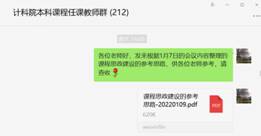 1月8日召开本科任课教师工作会,在更大范围内将线上教学的具体要求、线上教学准备工作和需要注意的事项等向全体教师进行了宣讲,让有教学任务的老师对将要进行的线上教学工作开展的流程和细节有更加深入的理解,做好线上教学开展的准备。