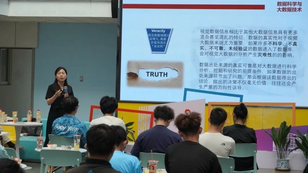 谢琨副教授为同学们分别介绍了数据科学以及大数据技术的基本内容,说明了计科院数据科学与大数据专业的教学目标。她以视觉大数据为例,让同学们生动地认识到了生活中每日产生的海量数据,使同学们更直观的了解了大数据技术的应用场景。她指出公司致力于培养“数据科学家”与“数据分析师”,希望感兴趣的同学们积极参与学习实践,努力成为未来国家所需要的稀缺人才。