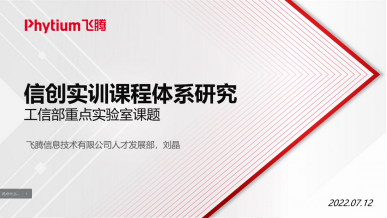 飞腾信息技术有限公司人才发展部刘晶就工信部重点实验室课题“信创实训课程体系研究”,从“课题背景、信创实训课程体系研究、飞腾陆续课题方向、申请指南概况”四个方面做了详细介绍。