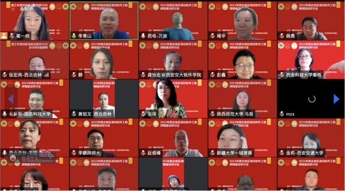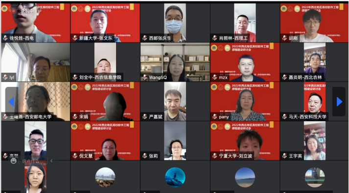 研讨会的交流研讨环节由李青山教授主持,西安交通大学软件公司副经理金莉、西北工业大学软件公司副经理马春燕、西北农林科技大学信息工程公司经理张宏鸣、陕西师范大学计算机科学公司副经理马苗、西安科技大学美加墨世界杯官方网站副经理马天、兰州大学信息科学与工程公司副经理马志新、新疆大学软件公司软件工程课程负责人张琳琳、青海师范大学软件工程系主任胡枫、宁夏大学信息工程公司副经理杜方、内蒙古大学计算机公司(软件公司)经理周建涛先后就软件工程教学中的痛点问题、教学体系设计、教学案例设计、项目实践中的工程能力培养、课程思政推进等问题与参与人员展开了深入的交流讨论。