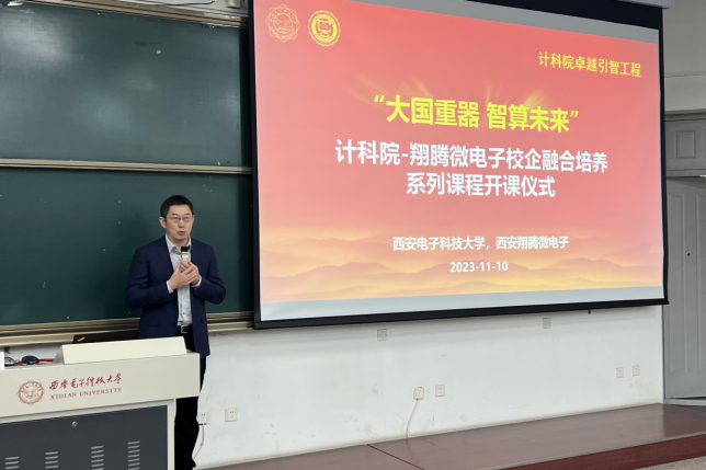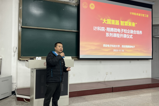 田泽总经理对翔腾微电子科研工作及课程内容进行了介绍,并表示公司十分重视与西电计科院合作开设面向卓越工程师培养的校企融合课程,一方面希望通过对于机载芯片与计算架构的讲解、实验与实训,实现高校与企业之间的产教研深度融合;另一方面,希望更多同学掌握面向自主芯片软硬件生态的开发技术与实践方法,助力卓越创新人才的培养。