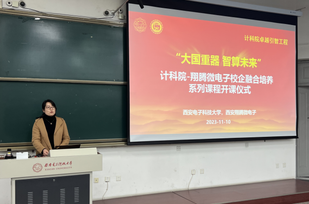 杨敏副处长代表本科生院对本次活动的开展表示热烈祝贺,对翔腾微电子对于公司卓越班建设的支持表示感谢,并简要介绍了以“六卓越一拔尖计划”为代表的公司特色培养班体系,并强调卓越班尤其注重校企联合培养与员工实践能力培养。杨敏指出,计科院与翔腾微电子本次联合开展的校企融合系列课程是践行校企联合人才培养体系构建的重要举措,希望可以借助此次活动积累卓越人才培养的新经验,贡献卓越班建设的新案例。