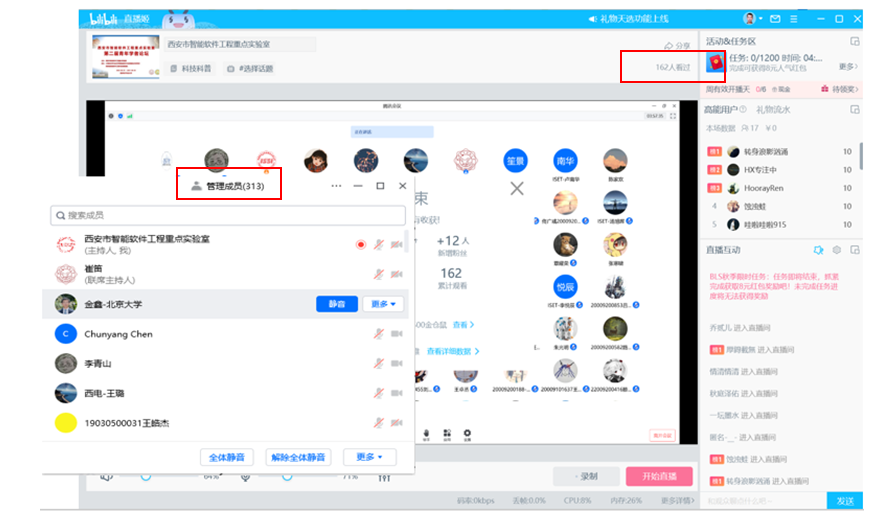8月26日上午的报告由重点实验室张亮教授和朱光明副教授主持,加拿大阿尔伯塔大学马雷副教授、新加坡管理大学谢肖飞博士、南开大学张圣林副教授、西北工业大学闫庆森教授、美加墨世界杯官网崔笛博士、美加墨世界杯官网冯明涛博士带来了精彩报告,包括数据驱动智能软件系统的质量与可靠性保障、神经网络测试与修复、大规模云平台故障诊断机制、贝叶斯稀疏网络持续学习方法、基于代码嵌入表征的软件重构技术、数据-知识混合驱动的视觉场景理解等方面的研究工作。在两天的报告中,通过腾讯会议与直播平台,论坛听众也与嘉宾就报告中感兴趣的内容展开了积极互动。