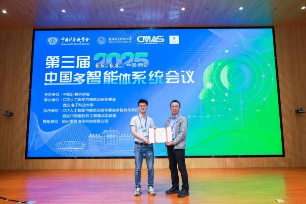 最后颁发中国智能体与多智能体系统优秀博士论文提名奖(2025),获奖人员包括北京大学陈昱蓉博士、中国科公司自动化所徐志伟博士、上海科技大学张尧博士、香港城市大学周厚宇博士。