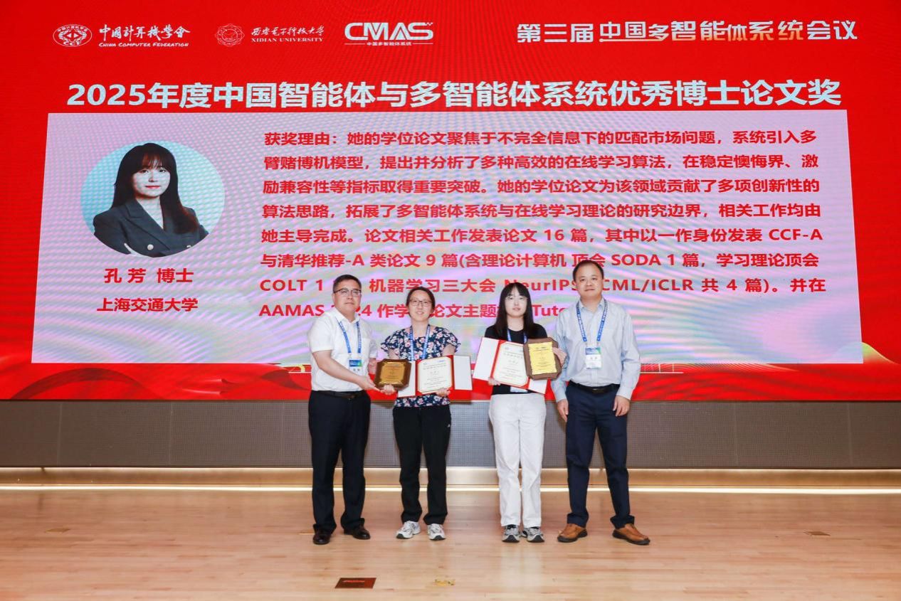 其次颁发中国智能体与多智能体系统优秀博士论文奖(2025),获奖人员为上海交通大学孔芳博士。