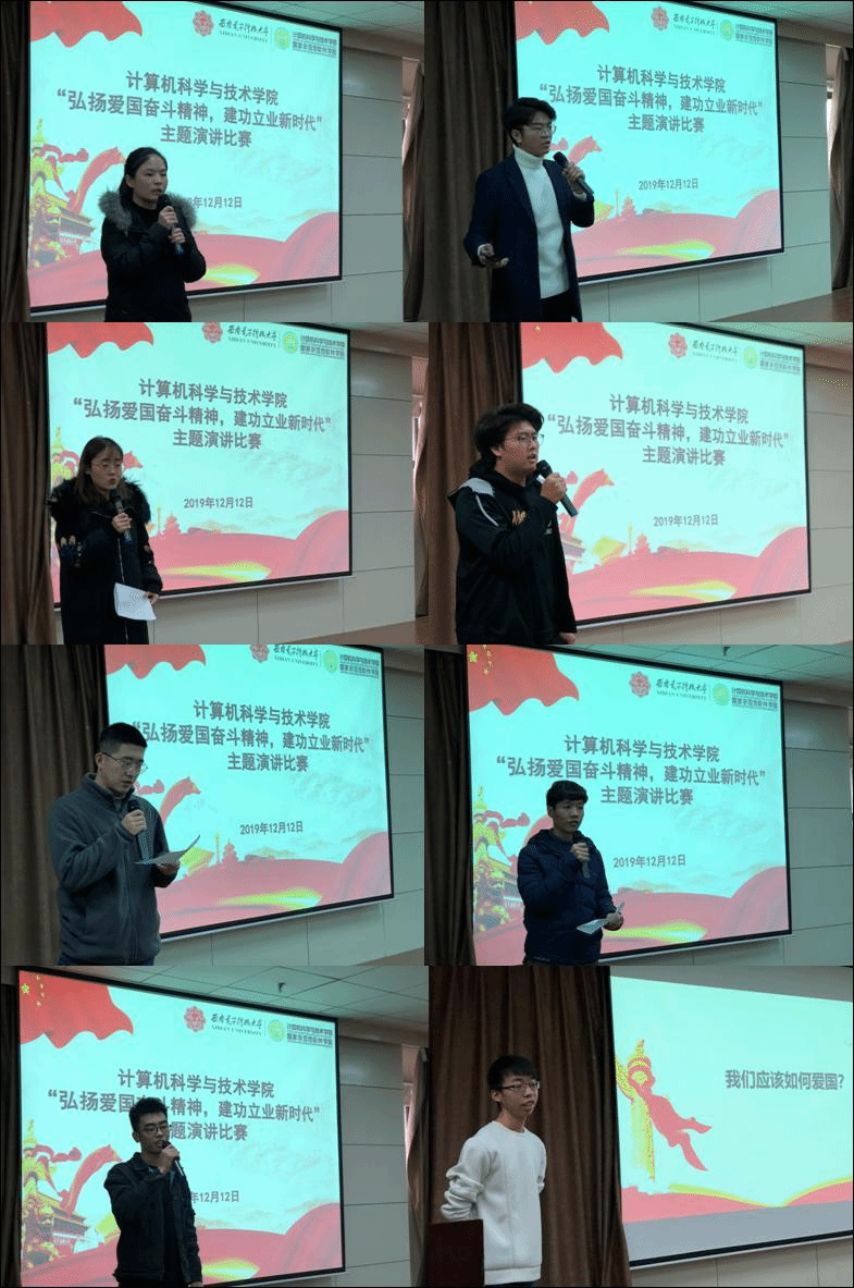 参加演讲比赛的8名选手由公司第三期入党积极分子培训班优秀学员组成,分别是2017级计科物联、软件工程专业本科生及2019级硕博士研究生。活动旨在检验公司入党积极分子培训成效,同时激发青年学子爱国热情,勇担时代使命,在老员工中形成精神感召和行动指引。