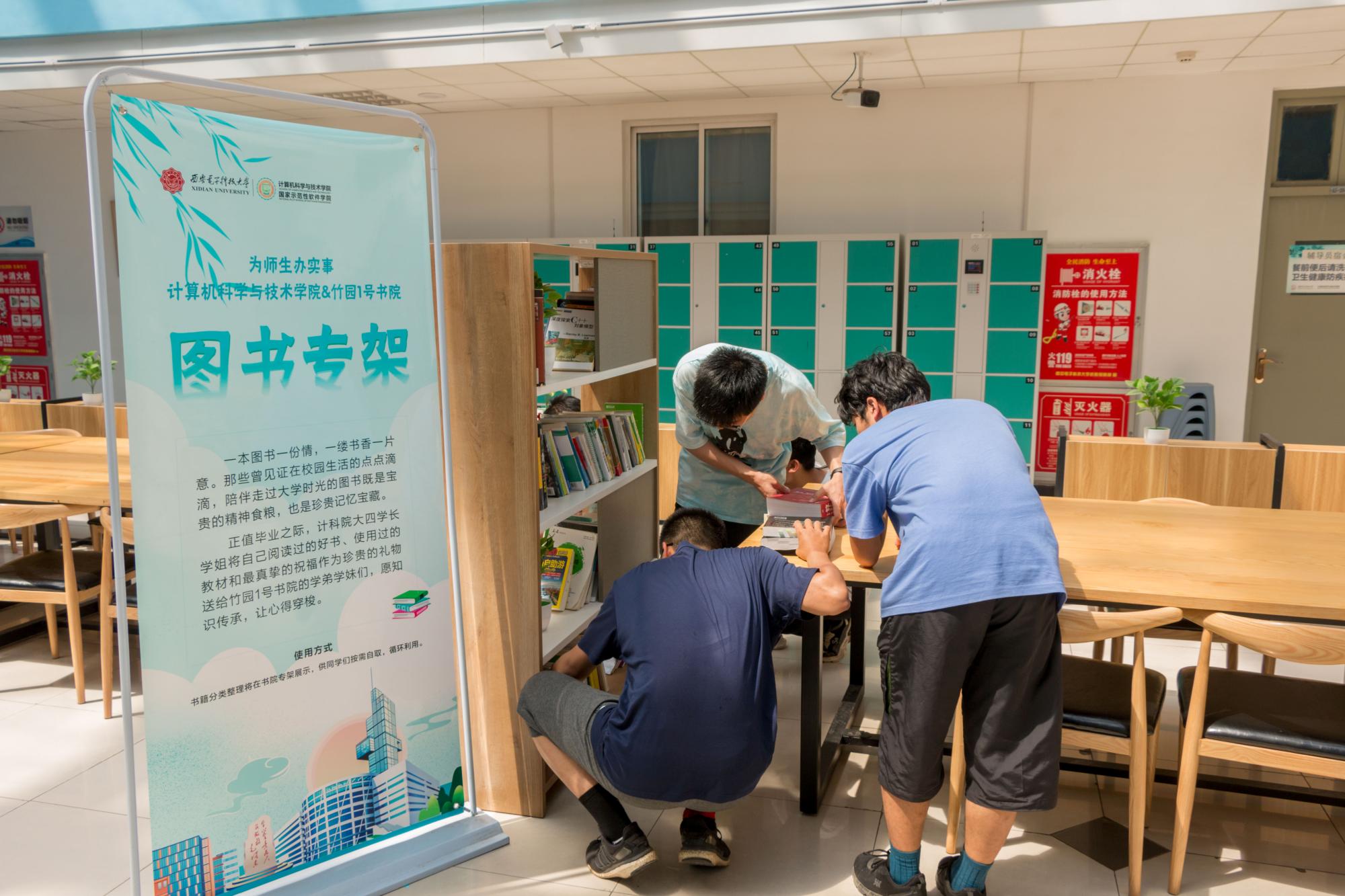 美加墨世界杯官方网站联动竹园1号书院将所赠书籍分类整理在书院大厅打造“图书专架”展示,供同学们按需自取,循环利用。活动结束后,大一同学们纷纷驻步围看图书展架,挑选自己所需要的书籍,将学长学姐的积累与祝福传承。