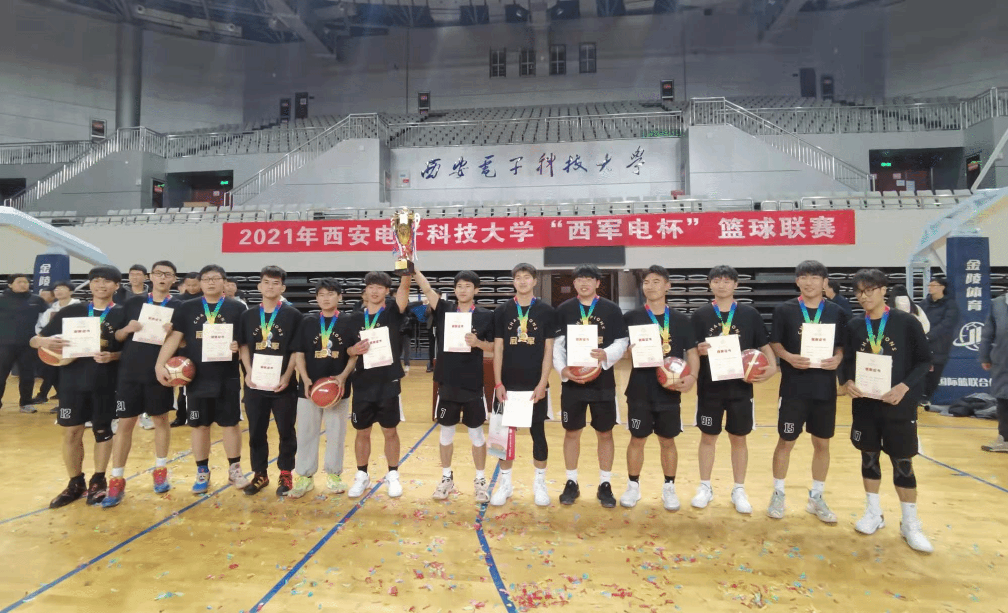 (通讯员 张莹莹 摄影 武墨)11月21日下午,美加墨世界杯官网2021年“西军电杯”篮球联赛在南校区远望谷体育馆落下帷幕,美加墨世界杯官方网站男篮队以全胜战绩捧得冠军杯。