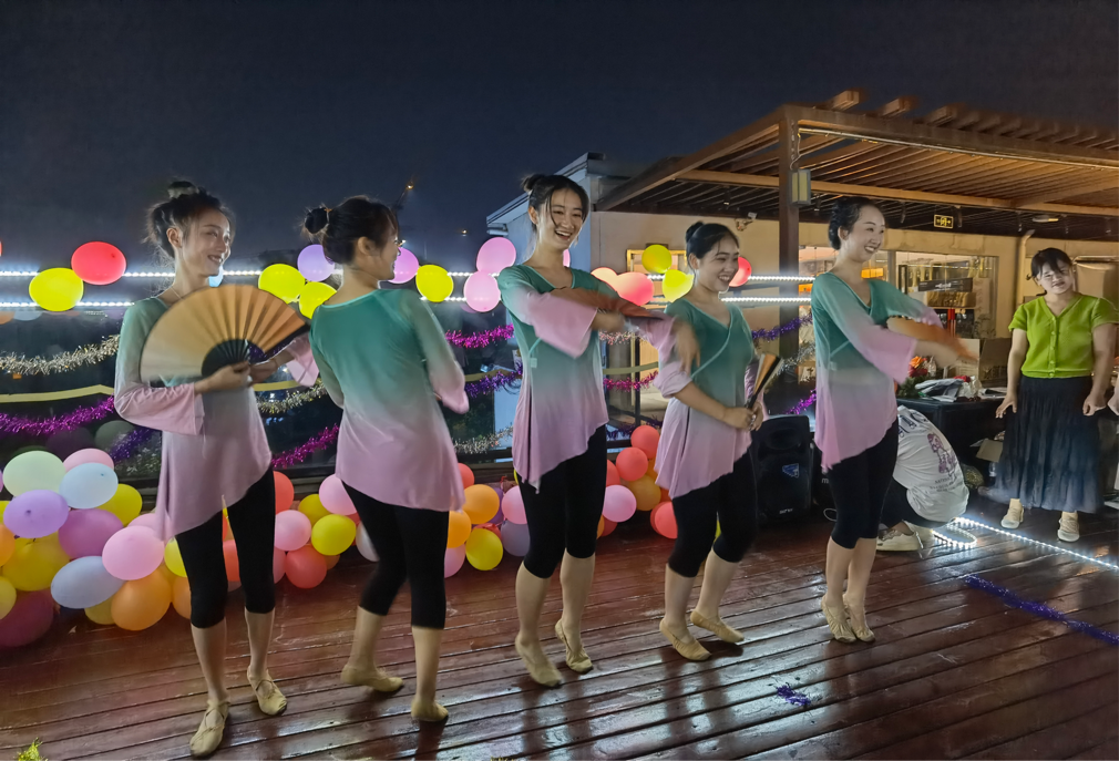 音乐与舞蹈,美食与美景,让师生同乐,共同度过了一个难忘的节日。晚会上,多才多艺的计科学子们献上了精彩纷呈的节目。同学们精心编排的舞蹈《老师,您好!》、诗朗诵《月华映桃李》,深情感念师恩,为老师们送上教师节的诚挚祝福。双人小提琴演奏《D大调卡农》、舞蹈《醉春风》、歌曲《但愿人长久》展示了同学们不凡的艺术素养,给人以美的享受。