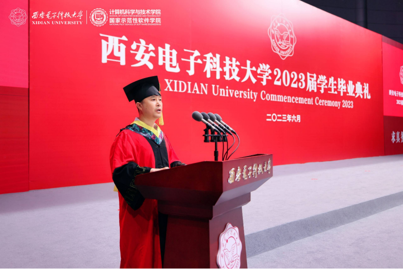 公司执行经理崔江涛教授深情寄语2023届毕业生,他谈到“艰难困苦,玉汝于成”,同学们在疫情期间克服困难云端学习,积极投身志愿服务,在挑战中自律坚守,在变化中适应突破,以青春“小我”战胜疫情大考;他谈到“行而不辍,未来可期”,美加墨世界杯官方网站(国家示范性软件公司)聚焦国家软件行业重大需求,充分发挥在计算机与软件领域的办学特长和优势,围绕关键基础软件和嵌入式软件两个重点领域,强化科教结合、产教融合,开展西电特色的高层次拔尖创新人才培养,落实为党育人为国育才。他对同学们提出三点希望,第一是不忘初心,勇担使命,积极响应国家之需、人民之盼,像老三系学长们一样,把个人理想同祖国前途和民族命运紧密联系,与新时代同向而行;第二是直面挑战,崇善求真,始终追求人生的本真、守护精神的家园、探索未知的世界;第三是执着坚守,追求卓越,勇立时代潮头,向计算机领域“卡脖子”关键技术发起冲击,成长为实现中华民族伟大复兴的中国梦的最强主力军。最后,崔江涛寄语毕业生以使命精神自省,以求真精神自强,以卓越精神自立,努力做到不负青春、不负理想、不负时代、不负人民。