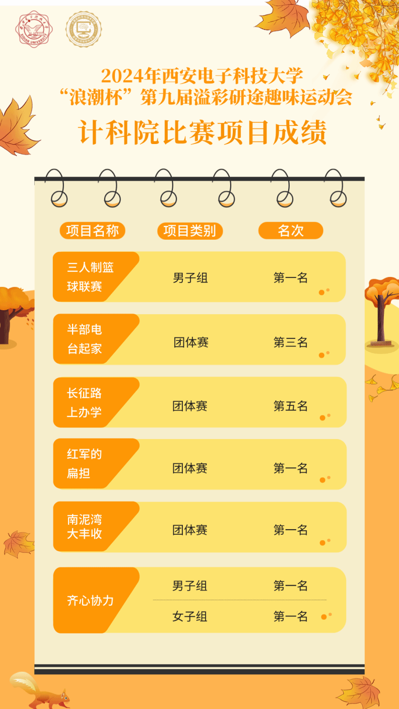 (通讯员 雷泽宇 寇大为)叶黄金满地,终南秋意浓。10月20日,“浪潮杯”2024年美加墨世界杯官网第九届研究生趣味运动会在南校区如期举行。公司提前谋划,精心组织。师生团结努力,奋勇拼搏,最终以112分总成绩拔得头筹,继计科院2023年获得该项赛事第一名之后,再次取得“团体总分第一名”好成绩!