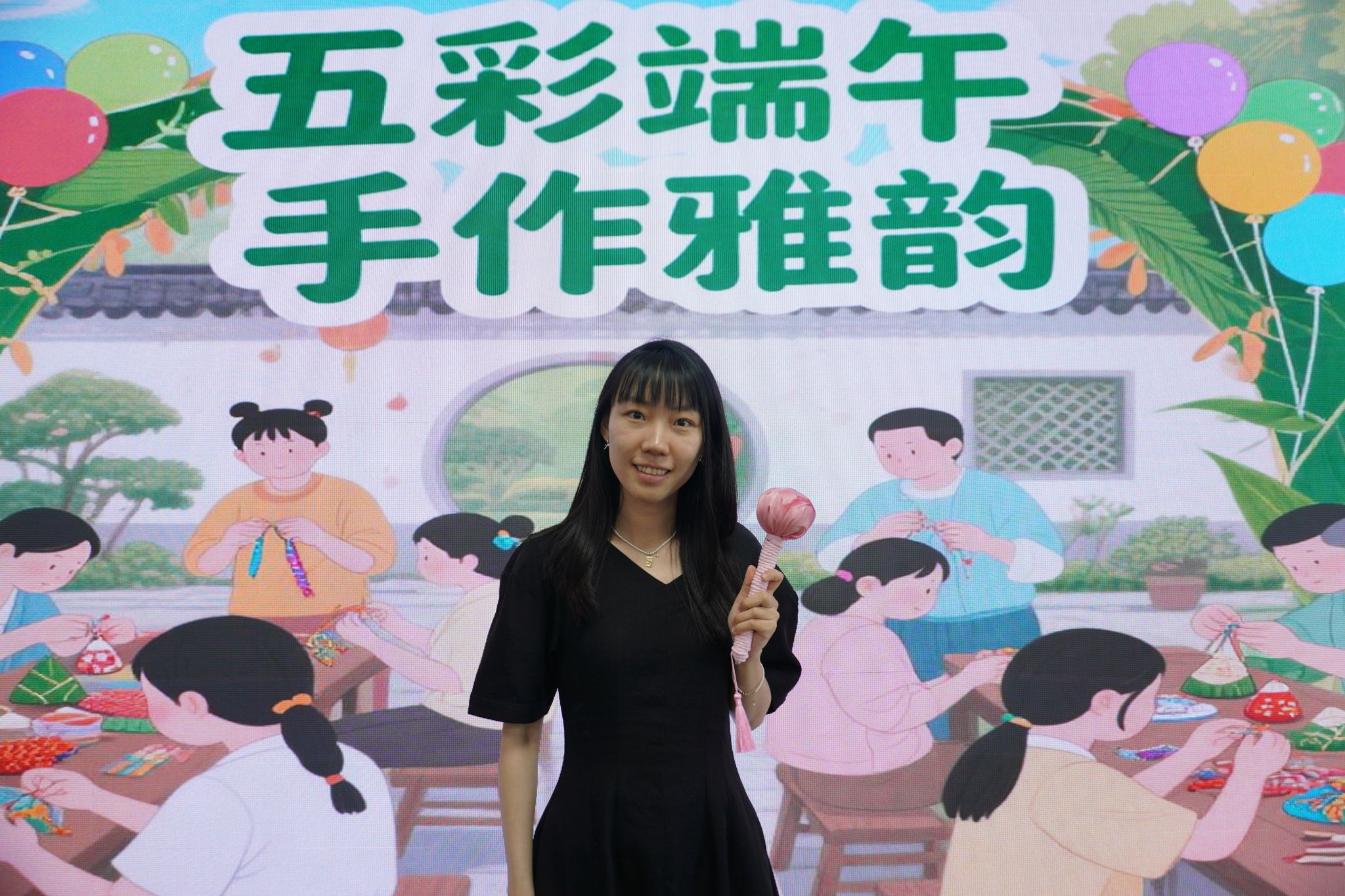 活动现场精心准备的端午艾草锤材料包、五彩绳及其挂饰,不仅是文化符号的载体,更成为心理调节的媒介。每一个艾草锤、每一根五彩绳都寄托着浓浓的端午祝福。同学们精心挑选自己喜爱的艾草锤,将艾叶层层填充其中,指尖与植物纤维的接触产生触觉安抚效应,不少员工坦言“捏揉艾叶时能明显感觉到放松”。选择五彩绳的同学则将自己喜欢的挂饰装饰在五彩绳上,将祝福寄托其中。