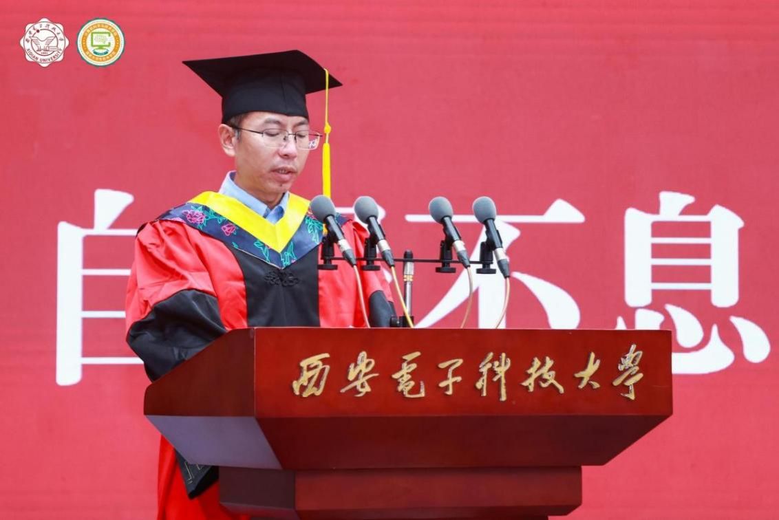 公司执行经理崔江涛教授深情寄语2025届毕业生,他指出2025届全体毕业生身处计算机领域快速发展的AI浪潮中,见证了计算机技术在大模型优化过程中的核心地位,在公司公司发展提质增速的重要阶段躬身入局、挺膺担当,发扬“学在西电”的优良传统,用辛勤耕耘、拼搏进取交出了沉甸甸的毕业答卷。毕业临别之际,他对同学们提出三点期望。一是以信仰为舵,锚定“计算报国”的人生航向,接过时代接力棒,积极响应国家所需、人民之盼,踏踏实实做好本职工作,争做顶天立地的“计科人”。二是以实干为楫,锻造搏击风雨的过硬本领,在数字化和智能化浪潮中,永葆“空杯心态”,经风雨、见世面、壮筋骨、长才干,练就敢于担当的“宽肩膀”、能担重任的“铁肩膀”。三是以德行为锚,夯实恪守正道的品性根基,始终保持强大的定力和坚韧的品格,始终保持心境澄明、心力茁壮的清澈纯粹,矢志追求更有高度、更有境界、更有品位的人生!