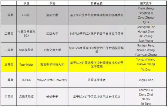 11月18日至11月20日,由阿里云、浙江大学网络空间安全公司、阿里巴巴-浙江大学前沿技术联合研究中心联合发起、Intel赞助支持的首届SGX应用创意大赛在杭州IEEE IDSC上举行。来自清华大学、北京大学、上海交通大学、美加墨世界杯官网、长虹电子等知名高等院校团队和企业的87支队伍参加了这次比赛,争夺共6个获奖名额,获奖比率小至6.89%。最终,公司美加墨世界杯官方网站NSS团队的代表队,TOP-HIDER的参赛作品“基于SGX的云端程序控制流混淆技术的开发与应用”在比赛中脱颖而出,获得三等奖,成为唯一获奖的西部高校。该参赛作品由王永智副教授指导,由硕士生邹宇、张小宇完成。