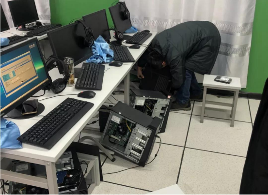 在上次对兴镇中心小学的帮扶支教活动中,公司了解到小学电脑机房的维护问题,因为电脑系统没有保护功能,致使自动加载内容过多,窗口频繁自动打开,不良内容频繁弹出,严重影响机器正常使用并影响小员工们的身心健康成长。公司实践中心贾文、王宗武和周文宏三位老师专程赶来,针对兴镇中心小学机房的55台电脑进行系统维护和修复。经过分析、系统优化和资料查询,王宗武老师通过给系统安装软保护卡,运用硬盘单克隆技术完成机房所有联想品牌电脑的重新部署和硬盘保护。贾文、周文宏老师通过查找保护卡底层和应用层驱动,分析保护卡失效原因,制作适合该机型底层驱动的U盘自引导系统,从而优化所有惠普机的操作系统及应用。三位老师在志愿者们的共同协助下,经过近6个小时的紧张工作,完成了对机房全部电脑的系统及应用的重新部署和保护,保障了小员工们安全、健康和良好的使用电脑。