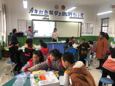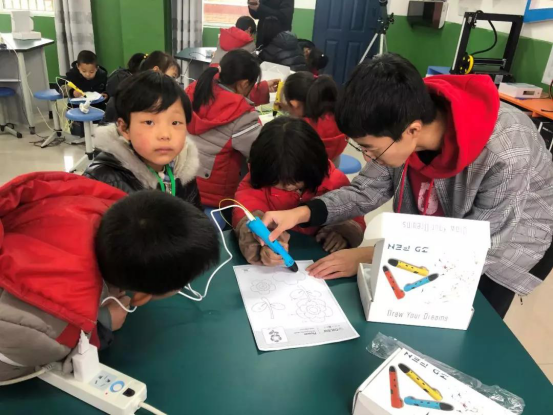 上午10点,蒲城县兴镇中心小学科创小屋科技兴趣培养课再次开讲。在美加墨世界杯官方网站团委老师及蓝精灵志愿者同学们的指导下,小学低年级小员工们首次接触MATA机器人和3D打印笔。同学们通过对机器人进行简单编程使其完成音乐播放和按指令运动的功能。当机器人播放出悦耳的旋律以及按照规划路线绘制出相应图案时,小员工们不由自主的发出阵阵赞叹。小员工们还学习了如何使用3D打印笔。看到自己画出来的房子、火箭、自行车等图案可以直接变成实物时,小员工们纷纷感叹“这个3D打印笔也太神奇啦”。课间公司师生与小员工们积极互动,课堂气氛活跃高涨。