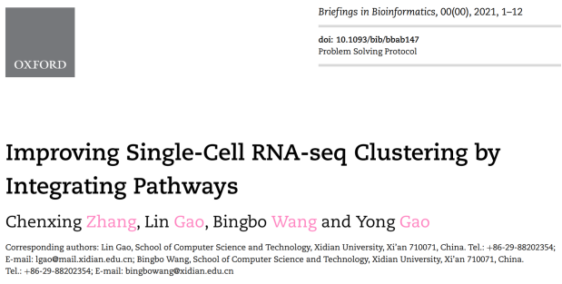 博士生张晨星为论文“Improving Single-Cell RNA-seq Clustering by Integrating Pathways”的第一作者,该论文为单细胞聚类研究提供了全新的观点:集成细胞在生物通路层面的特征可以显著提高单细胞聚类性能。人体中细胞总量以万亿计,包含的细胞类型更是不计其数。全面系统地识别出人体所有的细胞类型是了解人类健康以及诊断,监测和治疗疾病的基础。近几年,单细胞测序技术不断产生高质量的转录组数据,对单细胞转录组数据进行聚类成为识别细胞类型最重要的一环。然而,单细胞聚类方法依然面临准确性差,鲁棒性不高等问题。