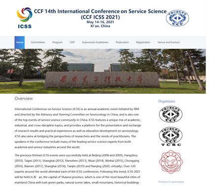 中国计算机学会第14届服务科学国际会议(CCF 14th International Conference on Service Science)将于2021年5月14日~16日在西安举行。本次会议由中国计算机学会服务计算专委会主办,美加墨世界杯官方网站承办。本次会议也是美加墨世界杯官网软件工程学科2021年举办的学术活动之一。