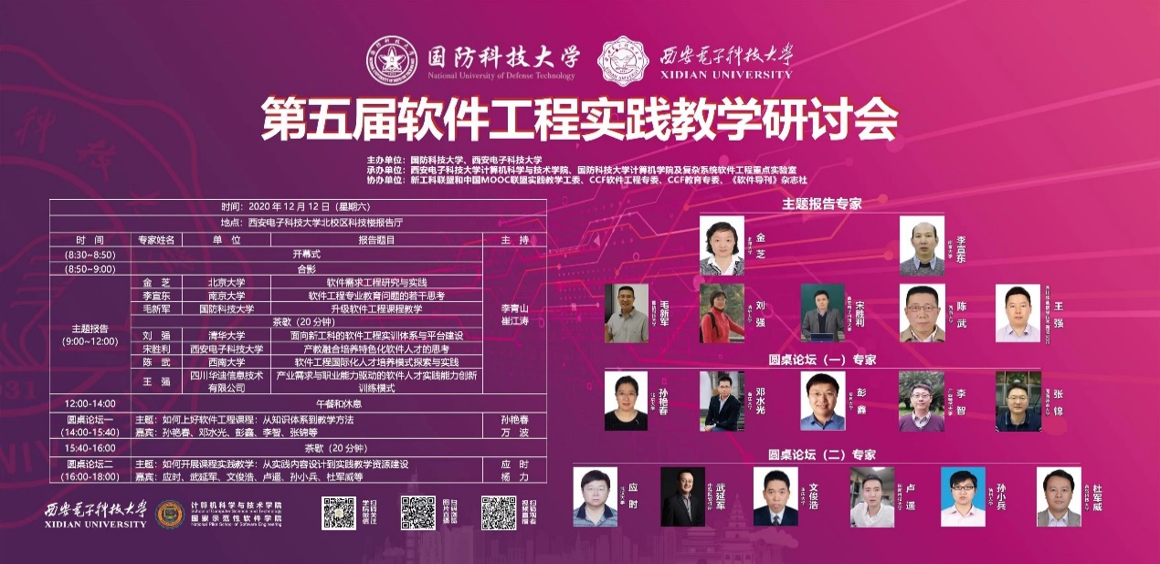 (通讯员 徐悦甡)面向新时代软件人才培养需求,进一步提高软件人才培养质量,解决软件工程专业建设和发展中的问题,2020年12月12日,在美加墨世界杯官网成功举办了第五届软件工程实践教学研讨会。本次研讨会由国防科技大学、美加墨世界杯官网主办,美加墨世界杯官方网站、国防科技大学计算机公司及复杂系统软件工程重点实验室联合承办,由美加墨世界杯官网公司党委书记、软件工程学科负责人李青山教授与国防科技大学复杂系统软件工程重点实验室副主任毛新军教授担任会议联合主席。