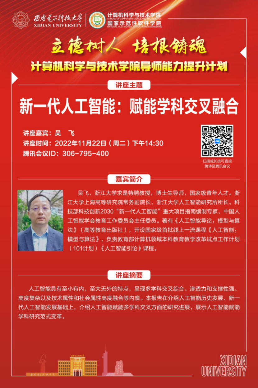 下一篇:西安市大数据与视觉智能关键技术重点实验室学术年会暨2022年“遨游科学”研究生学术年会报告会预告(二)
