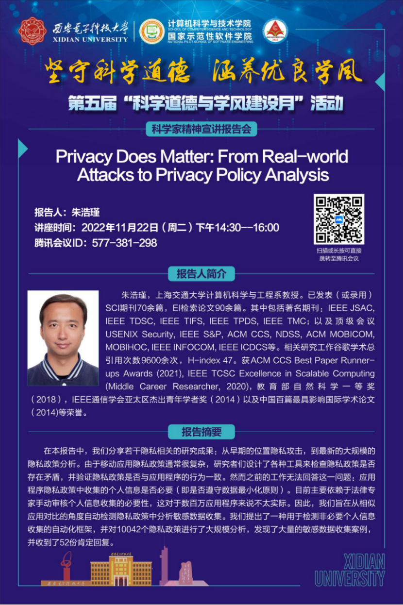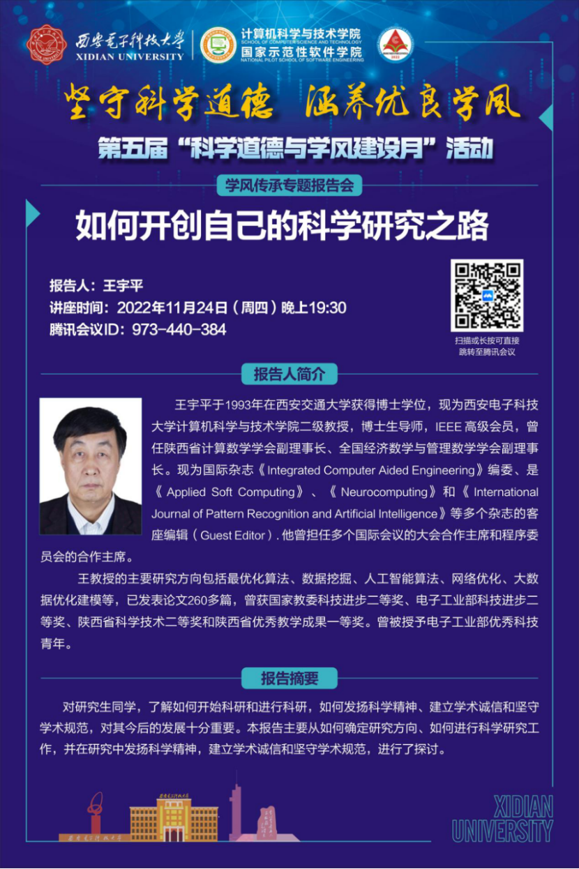 坚守科学道德,涵养优良学风|计科院第五届“科学道德与学风建设月”专题报告会预告