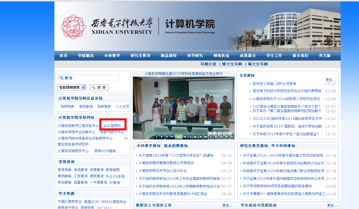 即日起计算机公司将正式启用网上预定会议室系统,如需使用会议室,请直接在公司的官方网站首页点击“会议室预约”然后填写相关内容并于使用会议室当日在主楼四区 216办公室 领取钥匙。