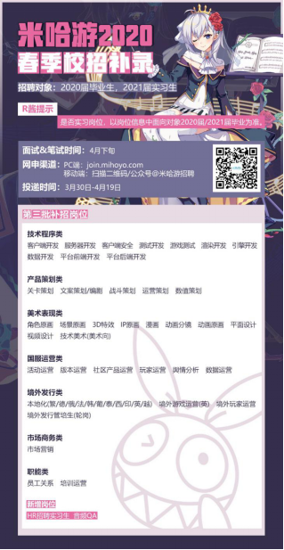 上海米哈游网络科技股份有限公司www.mihayou.com(简称:米哈游miHoYo),成立于2012年,公司是一家以动画、漫画、游戏、音乐和小说等产品为载体,深耕动漫文化的互联网文创企业,成功打造了知名国产原创动漫IP——崩坏系列。公司秉持“技术宅拯救世界”的使命,致力于成为世界一流的互联网动漫文化创意企业。