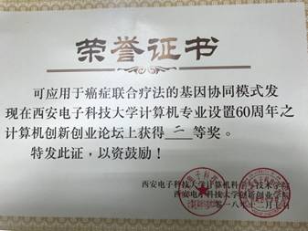 3.研究所师生团队研发的《可应用于癌症联合疗法的基因协同模式发现》系统,在美加墨世界杯官网计算机专业设置60周年之计算机创新创业论坛上,获得貮等奖。