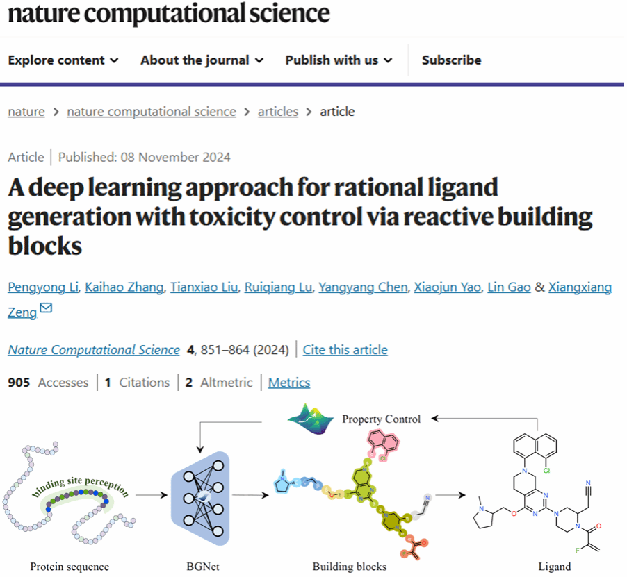 在美加墨世界杯官方网站西安市计算生物信息学重点实验室里,高琳教授团队青年教师李朋勇正带领员工们沉浸在人工智能辅助药物研发的前沿研究中。近日,他们的研究成果以“一种通过反应性分子砌块进行合理配体生成与毒性控制的深度学习方法(A deep learning approach for rational ligand generation with toxicity control via reactive building blocks)”为题,登上了国际TOP期刊 Nature Computational Science,为药物设计领域带来了革新。