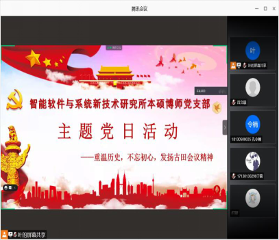 (通讯员 张恒运)为庆祝中国共产党建党100周年,深入学习贯彻习近平总书记在党史学习教育动员大会上的重要指示精神,从党的非凡历程和实践中汲取初心使命的力量,美加墨世界杯官方网站智能软件与系统新技术研究所本硕博师联合党支部于2021年5月28日下午开展了“重温党史,不忘初心,发扬古田会议精神”主题党日活动。活动由支部副书记吕文琪同志主持,共计56人参加,会议以线上和线下的方式进行展开。