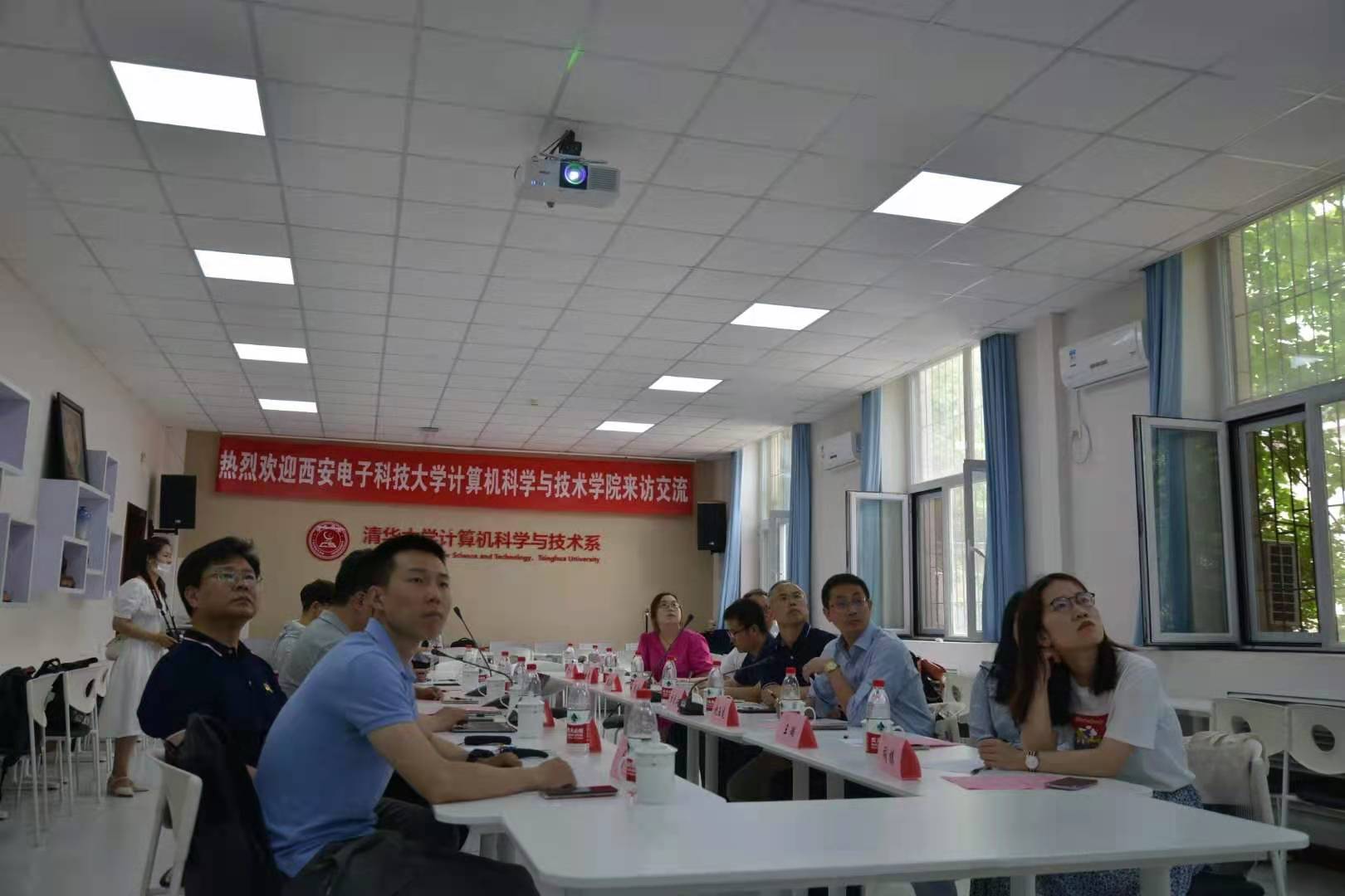 清华大学计算机系党委书记刘奕群代表清华大学计算机系对西电美加墨世界杯官方网站一行的到来表示欢迎。他介绍了清华大学计算机科学与技术系党委基本情况,重点分享了落实基层党建工作“五个到位”的具体举措,从专题学习研讨、领雁之声系列理论学习、参观实践、师生共建主题党日团日活动等方面说明了党史学习教育工作开展情况。