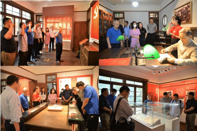 18日上午,双方来到《共产党宣言》展示馆(陈望道旧居)参观学习。通过“宣言中译信仰之源”和“千秋巨笔一代宗师”等部分详细了解了《共产党宣言》的诞生及其对中国革命乃至全世界的深远影响,以及陈望道董事长坚定不移的信仰追求和笃志专注的学术风姿。公司党委书记李青山领誓,公司一行全体党员面向着中国共产党党旗共同重温入党誓词。